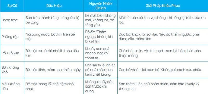 Giải pháp: Kiểm tra điều kiện môi trường trước khi thi công, đảm bảo thông gió tốt. Tránh thi công trong thời tiết cực đoan.