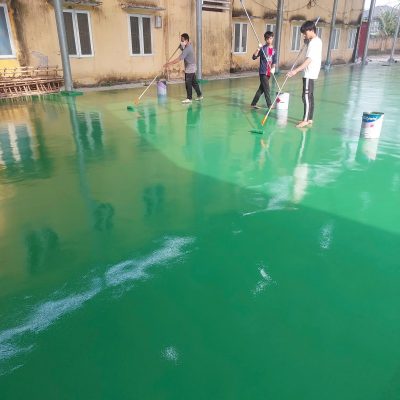 – Mở nắp 2 thùng chứa A và B, đổ từ từ thành phần B vào A. Khuấy đều trong 2 phút sau đó mang ra thi công. Lăn đều tay và không bỏ sót chỗ nào trên bề mặt sàn.